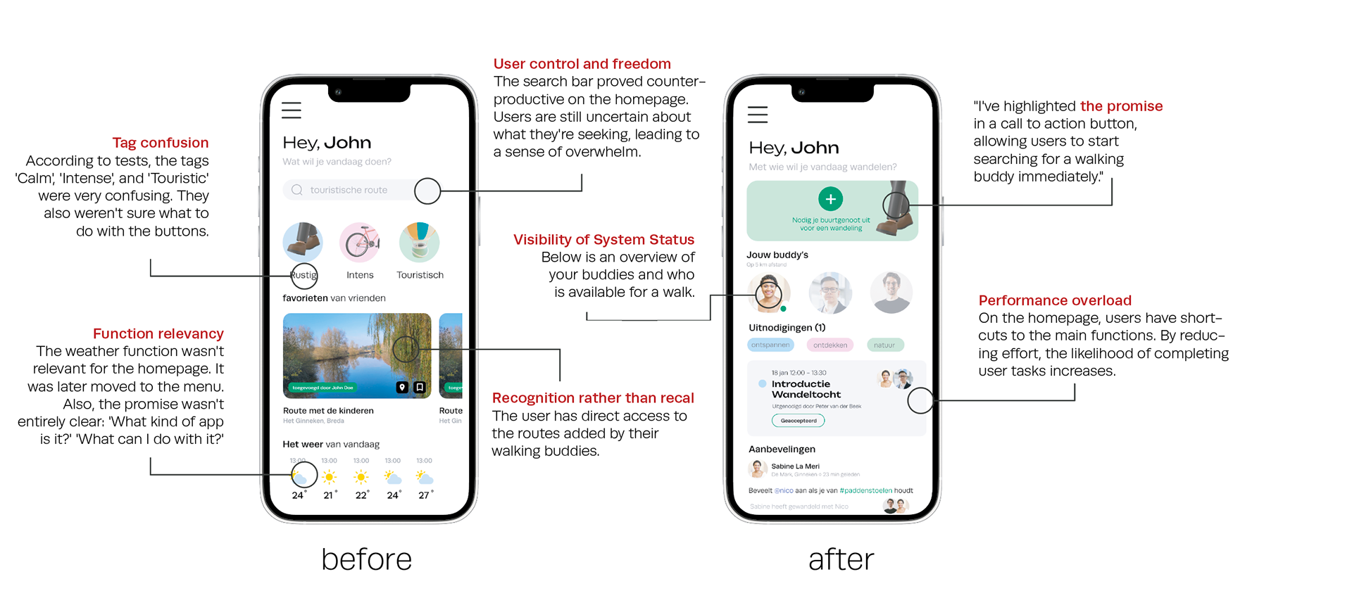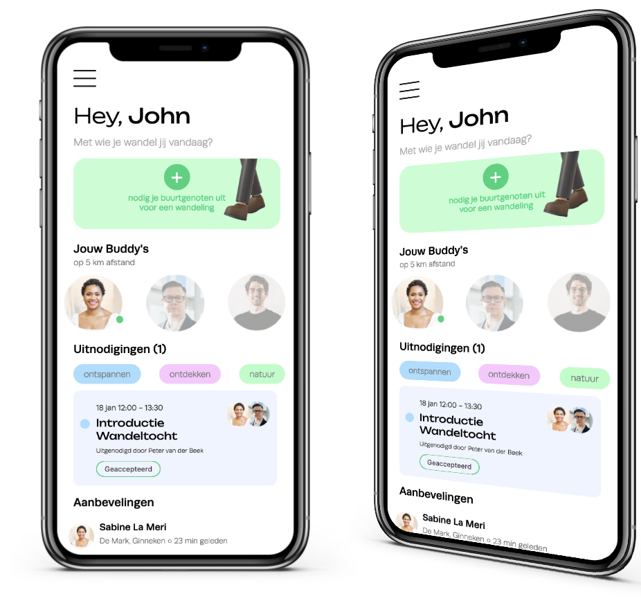 Ginneken, a district in the south of Breda, boasts a unique “village in a city” community with a strong connection to nature. Despite the residents’ frequent use of the term ‘cozy,’ interviews revealed a nuanced perspective, with many feeling a need for more practicality and down-to-earth interactions. My app aims to bridge these gaps, facilitating deeper connections among neighbors. Nature plays a pivotal role, as the nearby forests offer residents a retreat from their intense daily lives, fostering a sense of calm and authenticity. The app capitalizes on this connection, allowing users to find walking buddies within a 1 km radius, send walking requests, and share recommendations based on shared interests. The activities page provides insights into neighbors’ experiences, photos, and routes, each tagged for easy filtering based on preferences like relaxation, exploration, or a nature focus.